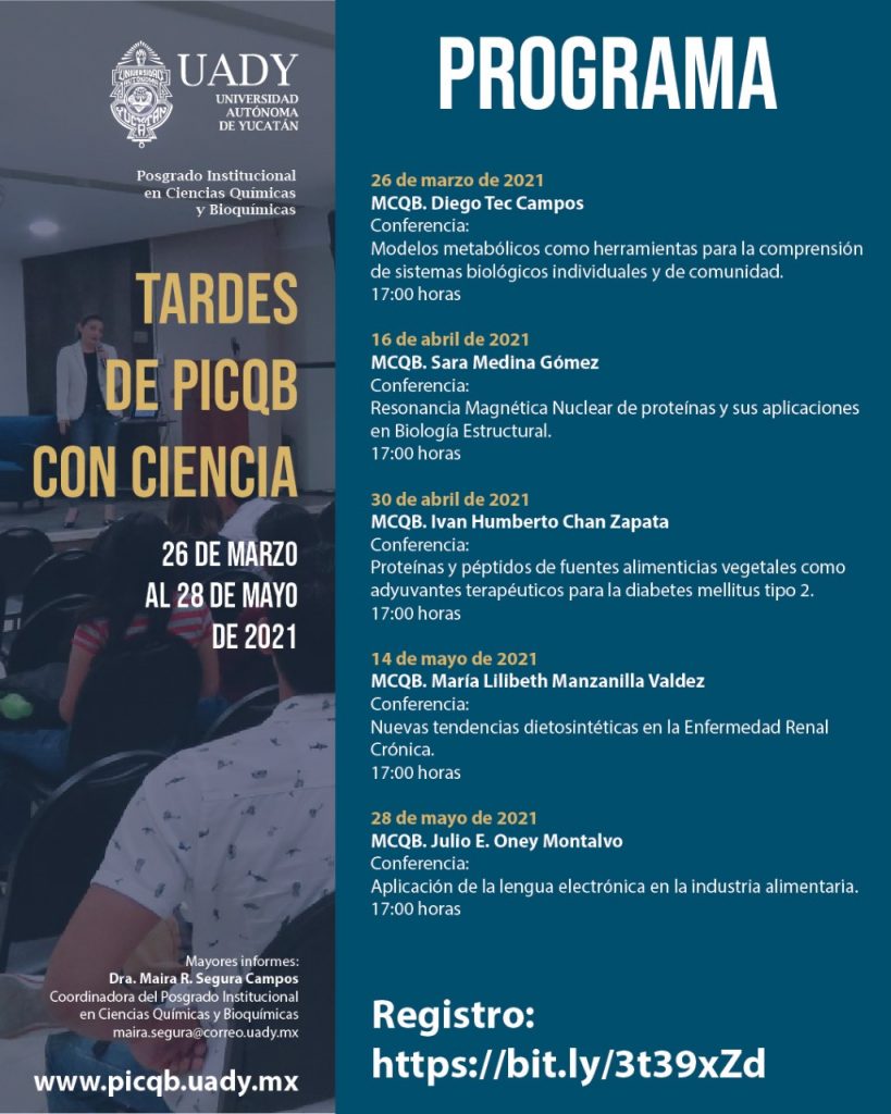 Los interesados en registrarse o conocer el programa completo pueden visitar la página  o ingresar a la página www.picqb.uady.mx