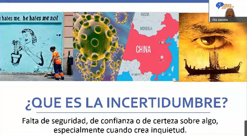 Mérida, Yucatán, 16 de marzo del 2021.- El perder el control y salirse de la zona de confort produce incertidumbre y genera una respuesta de ansiedad, miedo e inseguridad, lo cual hace que nuestro cerebro busque la explicación a esas situaciones para hacerles frente, afirmó la profesora de la Facultad de Medicina de la Universidad Autónoma de Yucatán (UADY) Rita Zapata Vázquez, durante la conferencia “El cerebro, incertidumbre y toma de decisiones”.