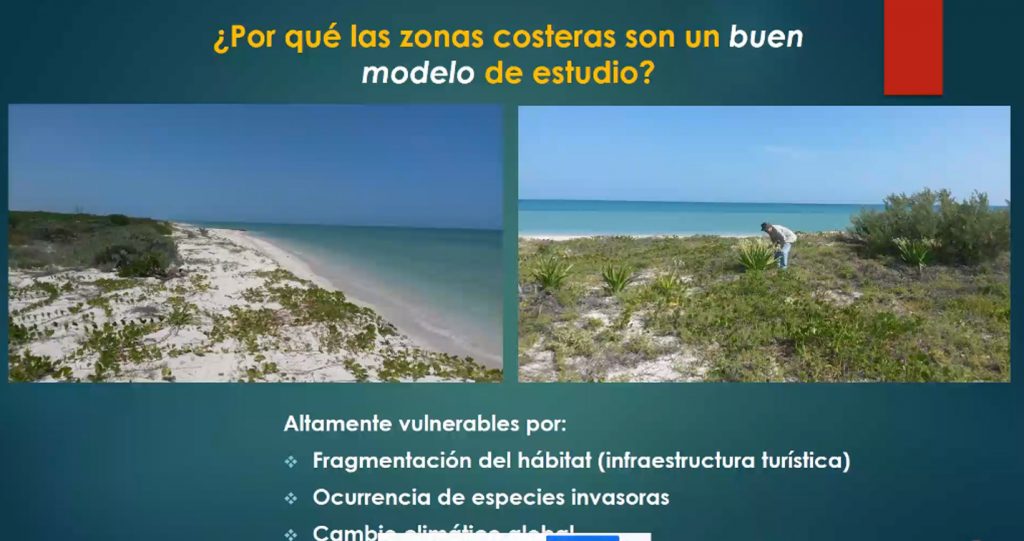 Durante la conferencia “La conservación de la vegetación costera de Yucatán”, Parra Tabla destacó que, a nivel mundial, las zonas costeras han sido ecosistemas sujetos a fuertes presiones que los han modificado drásticamente por efecto de la deforestación, el cambio de uso de suelo para desarrollos turísticos y la contaminación, lo que ha facilitado la aparición de estas especies invasoras.