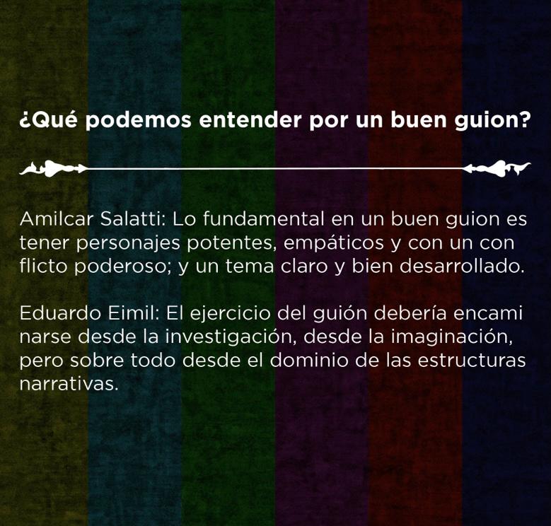 Por su parte, el guionista Amilcar Salatti considera que la competitividad y audiencia se logran con resultados constantes, lo cual implica a muchas personas. “No se hace nada con tener el mejor guion del mundo y entregárselo al mejor director, si después las condiciones productivas echan por tierra los sueños creativos. O al revés, tener todas las condiciones productivas soñadas, y salir a rodar un guion que aún le falta trabajo”.