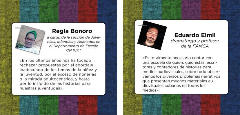 Bonoro, a cargo de la sección de Juveniles, Infantiles y Animados en el Departamento de Ficción del ICRT, cuenta que en los últimos años les ha tocado rechazar propuestas por “el abordaje inadecuado de los temas de la niñez y la juventud, por el exceso de ñoñerías o la mirada adulto céntrica, y hasta por lo insípido de las historias para nuestras juventudes. Existen, no obstante, obras escritas en la literatura infantil y juvenil que bien pudieran ser la solución para la escasez de guiones, pero faltan personas que las adapten a la TV”, y apunta como una posible solución la realización de remakes de los trabajos exitosos que forman parte de la memoria afectiva y el patrimonio audiovisual de los cubanos.