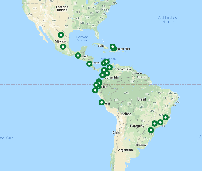 Los Fondos de Agua fortalecen la gobernanza de las cuencas al reunir a los actores relevantes (usuarios, empresas administradoras de agua, corporaciones, autoridades y sociedad civil) y aportar un sólido conocimiento científico para facilitar el proceso de toma de decisiones. Hoy en día existen 24 Fondos de Agua operando en Brasil, Colombia, Costa Rica, República Dominicana, Ecuador, México y Perú, como se observa en este mapa: