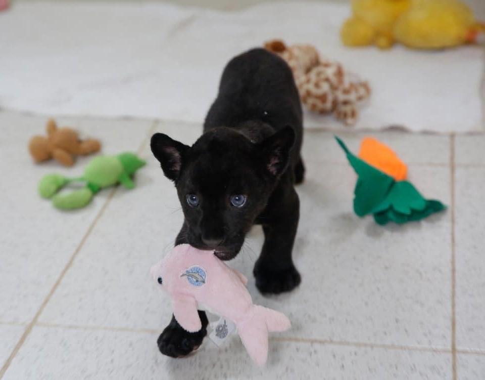 Mérida, Yucatán, 1° de febrero de 2021.- En el Parque Zoológico del Centenario hay un nuevo inquilino: una cría de jaguar negro, especie endémica y en peligro de extinción. Aún no tiene nombre, por lo cual el Ayuntamiento de Mérida convocó a niños y niñas de 6 a 12 años a enviar propuestas.
