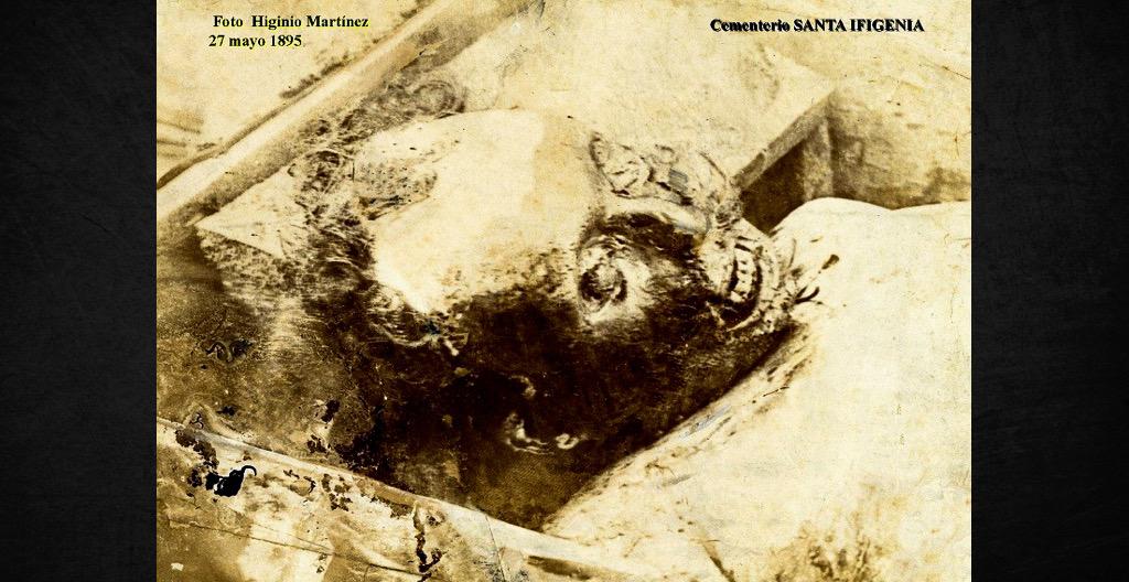 En el acta de defunción del Héroe Nacional, se empleó la frase “bigote fino y poco poblado”, para describir el grado de putrefacción del cadáver, según refirió Trujillo Fonseca. Sin embargo, en la foto de Higinio Martínez, publicada en la prensa el 27 de mayo de 1895, se podían apreciar vellos de diferentes tamaños sobre el labio superior del cuerpo. La investigación de Martínez reveló que el origen real del exceso de cabello se debía a que una parte había sido tomada de la melena para disimular la descomposición de la zona.