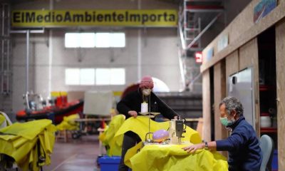 Mantas que utiliza desde hace años en sus acciones de protesta, Greenpeace las ha reciclado para convertirlas en más de 350 batas protectoras contra el Covid-19...