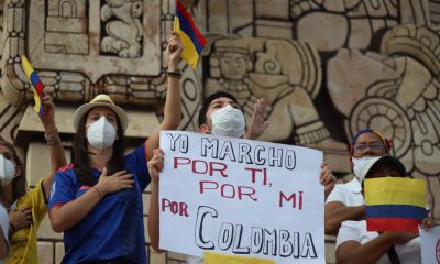 Personas originarias de Colombia que residen en Yucatán se manifestaron en el Monumento a la Patria. Mérida, Yucatán, 5 de mayo de 2021.- Decenas de personas...