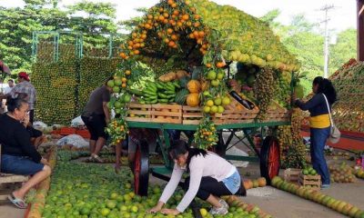 Ingeniosas esculturas hechas con cítricos (principalmente naranjas) adornan el recinto ferial de Oxkutzcab, como parte de su ya tradicional Feria de la Naranja que se celebra...