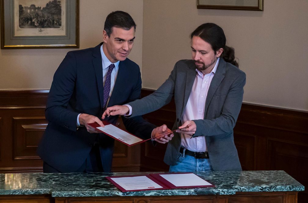 PSOE y Unidas Podemos firmaron un documento en el que definen sus prioridades para conformar un gobierno “rotundamente progresista”: 1) creación de empleo digno, estable y de calidad, 2) política social con escuelas de 0-3 años, salud pública, sostenibilidad de las pensiones, derecho a la vivienda, ciencia como motor de la innovación y lucha contra la corrupción, controlar casas de apuestas, 3) lucha contra el cambio climático, 4) fortalecer pequeñas y medianas empresas y autónomos, 5) derecho a la muerte digna y eutanasia, 6) cultura como derecho y fomento al deporte, 7) políticas feministas, 8) revertir la despoblación, 9) garantizar la convivencia en Cataluña dentro de la Constitución y 10) justicia fiscal y equilibrio presupuestario.