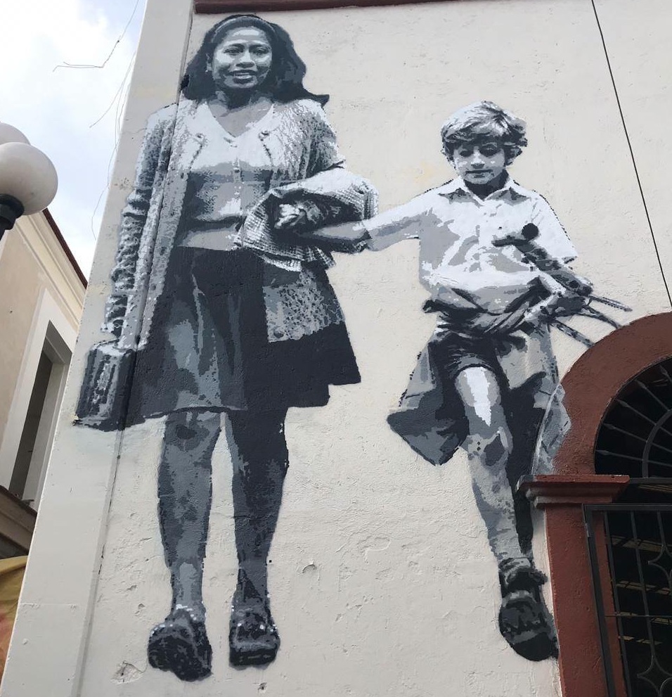 En su reconocimiento, el Colectivo Pelota Mixteca Tilu’u Ñuusavi y la Asociación Mixtecos Unidos de Miguel Pérez financiaron un mural en blanco y negro con una escena de la película, donde ‘Cleo’, papel que desempeña Yalitza en ‘Roma’, lleva de la mano a ‘Pepe’, el pequeño Cuarón, quien muestra gran cariño por su nana a lo largo del filme.