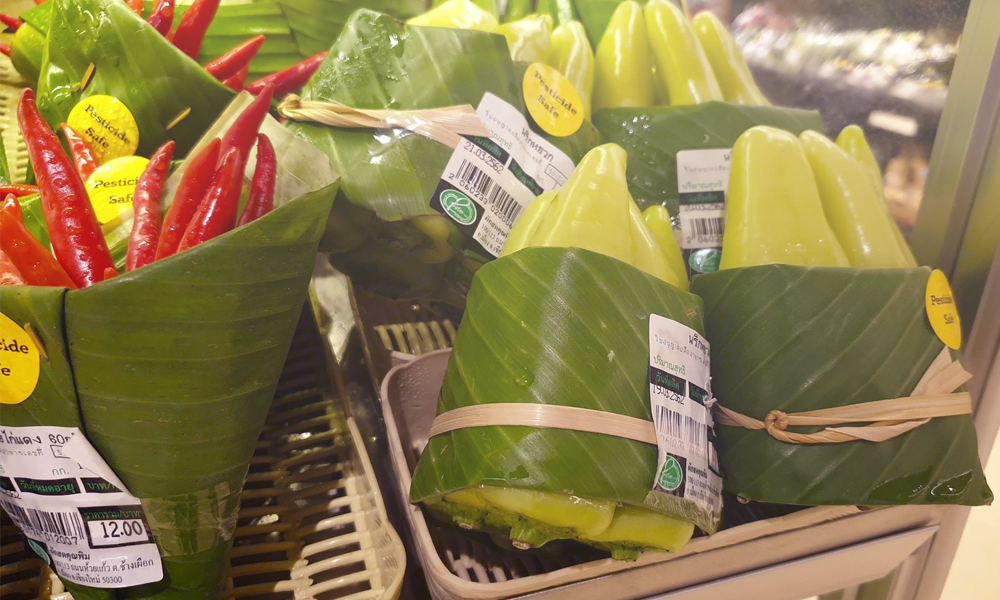 Con tal de reducir el uso de bolsas de plástico que aproximadamente tardan entre 150 y 1000 años en desintegrarse, afectando gravemente al planeta, una cadena de supermercados llamada Rimping , ubicada en Chiang Mai, Tailandia, ha comenzado a utilizar hojas de plátano en su lugar.