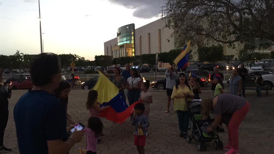 Un grupo de venezolanos que radican en la capital yucateca, se congregaron a las afueras de un centro comercial ubicado en el norte de la ciudad para mostrar su apoyo a Juan Guaidó, quien ayer se autoproclamó presidente interino de Venezuela.