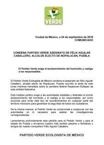 En torno al caso, el  Partido Verde Ecologista de México,  ha lanzado el siguiente comunicado: