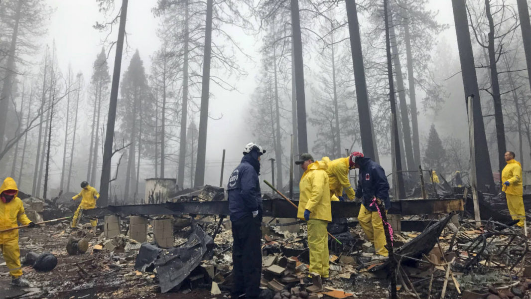 Los equipos de rescate continúan removiendo cenizas en busca de restos humanos alrededor del devastado pueblo de Paradise.