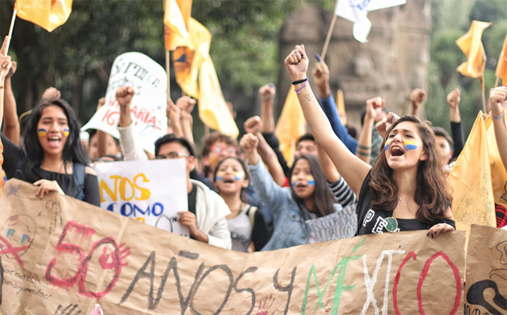 Alumnos de la UNAM y  diversas instituciones, además de ciudadanos en general, marcharon este miércoles desde el Museo Nacional de Antropología hasta el Zócalo, con tres fines: mostrar el rechazo a los hechos violentos en los que un grupo de porros atacó una marcha pacífica de estudiantes del CCH-Azcapotzalco, conmemorar cuatro años de la desaparición de los 43 normalistas de Ayotzinapa y conmemorar el 2 de octubre, día de la masacre de Tlatelolco.