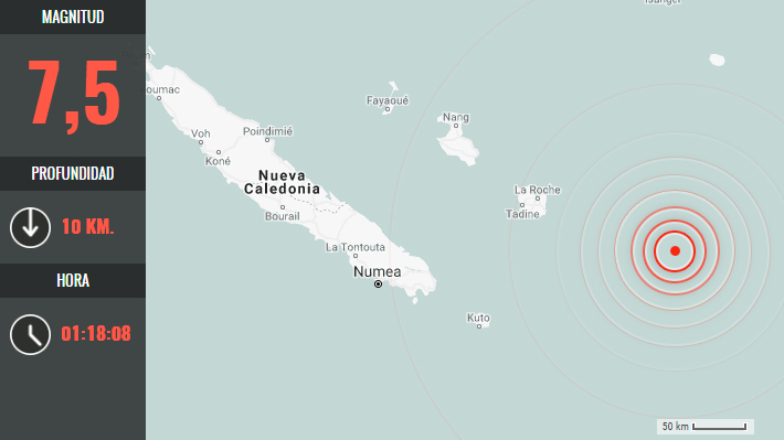 La fuerte sacudida se registró a las 15:18 hora local (4:18 GMT), a sólo 10 kilómetros bajo el lecho marino y a 168 kilómetros al este de Tadine, en la isla de Maré, según el Servicio Geológico de Estados Unidos, que vigila la actividad sísmica mundial.