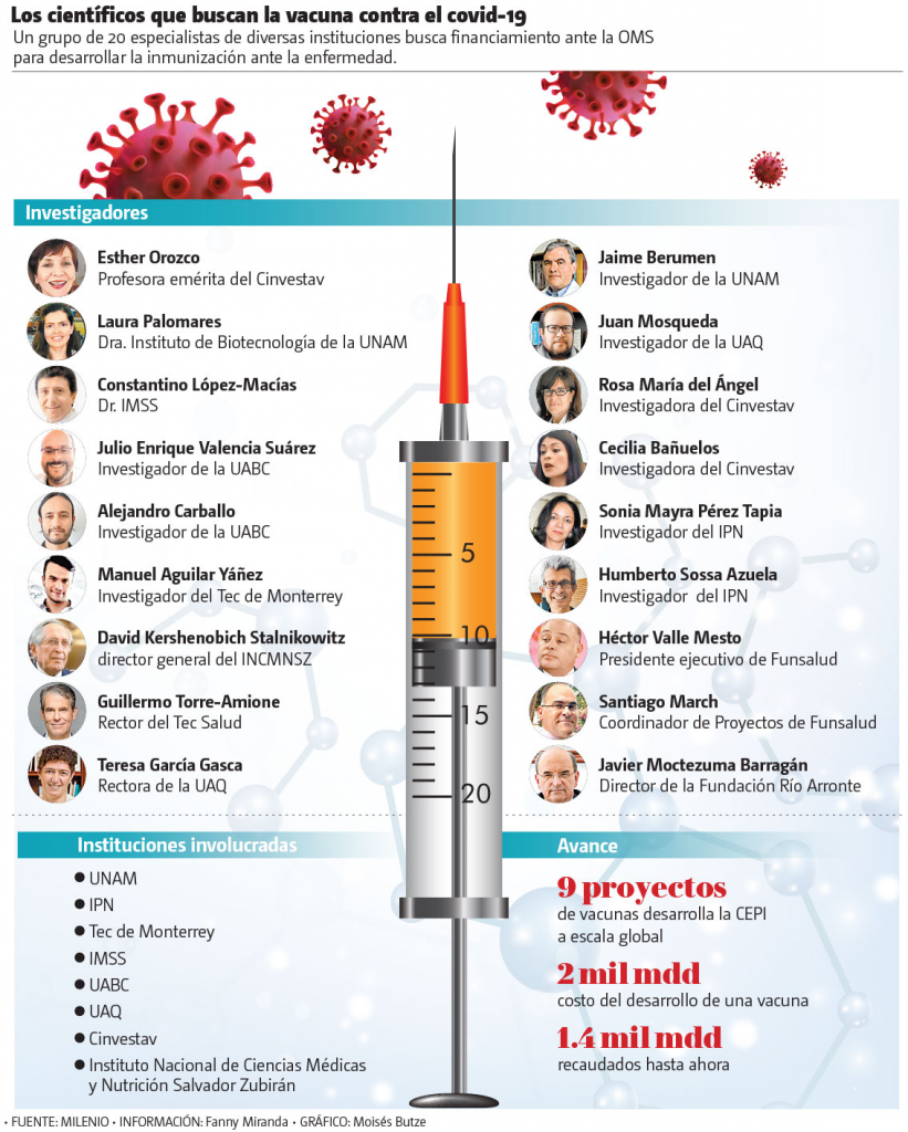 “Por un lado, vamos a colaborar con grupos del extranjero, la CEPI está apoyando nueve proyectos de investigación ligados con empresas farmacéuticas, pero al mismo tiempo no vamos a renunciar a que México tenga su vacuna propia, ya hay experiencias probadas de que somos capaces de hacer vacunas”, explicó la investigadora Esther Orozco, coordinadora del grupo técnico-científico.