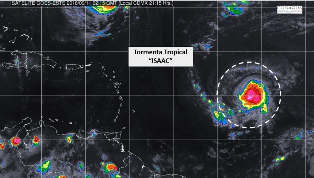 La Comisión Nacional del Agua (Conagua) informó que el fenómeno atmosférico “Isaac” se degradó a tormenta tropical con vientos máximos sostenidos de 110 kilómetros por hora.