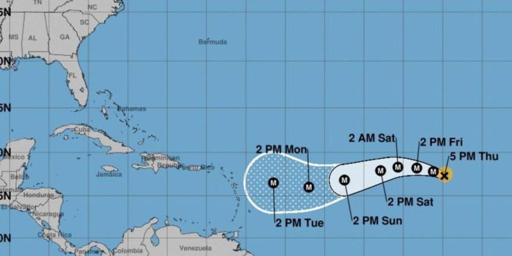 De acuerdo con el informe, la zona de inestabilidad se ubica a 4,290 kilómetros al este de las costas de Cancún, Quintana Roo, con rachas de hasta 140 km/h.