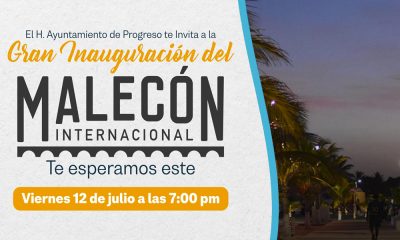 El Ayuntamiento de Progreso invita al público en general a la Gran Inauguración del Malecón Internacional, que tendrá lugar este viernes 12 de julio. La ceremonia...