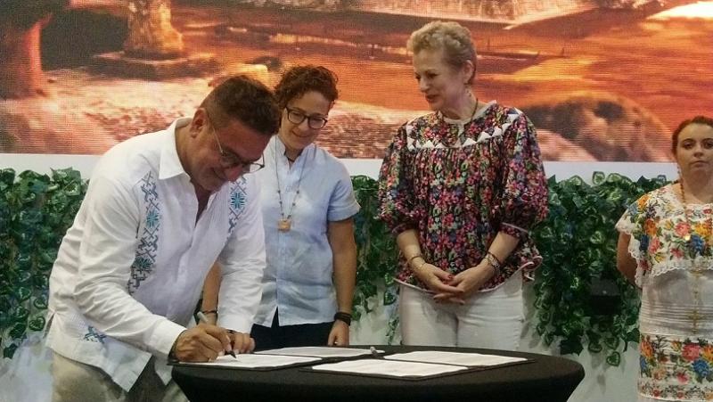 En el imponente stand de Yucatán, Fridman Hirsch y Cristian Berger, de la Asociación de Comités, signaron un documento para continuar con la promoción y el mejoramientos de la infraestructura en dichas localidades. El secretario de Turismo de Campeche, Jorge Manos Esparragoza, y Rosa del Carmen Nava López, secretaria del Comité Nacional Vocal de esa organización, fungieron como testigos.