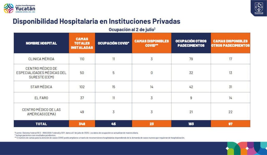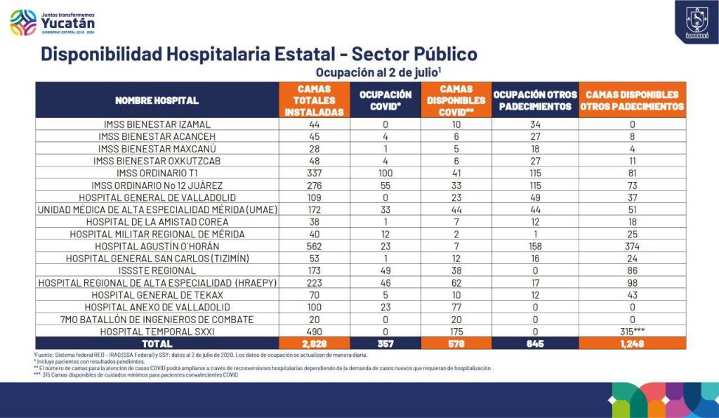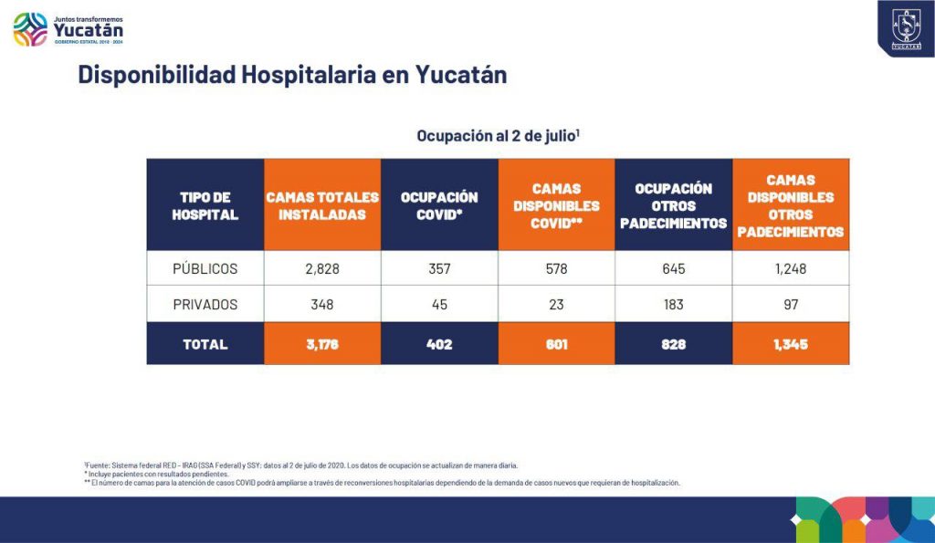Actualmente 66 por ciento de las camas para pacientes con la COVID-19, tanto de hospitales públicos como privados, están ocupadas: hay 402 pacientes hospitalizados, informó la Secretaría de Salud de Yucatán (SSY).