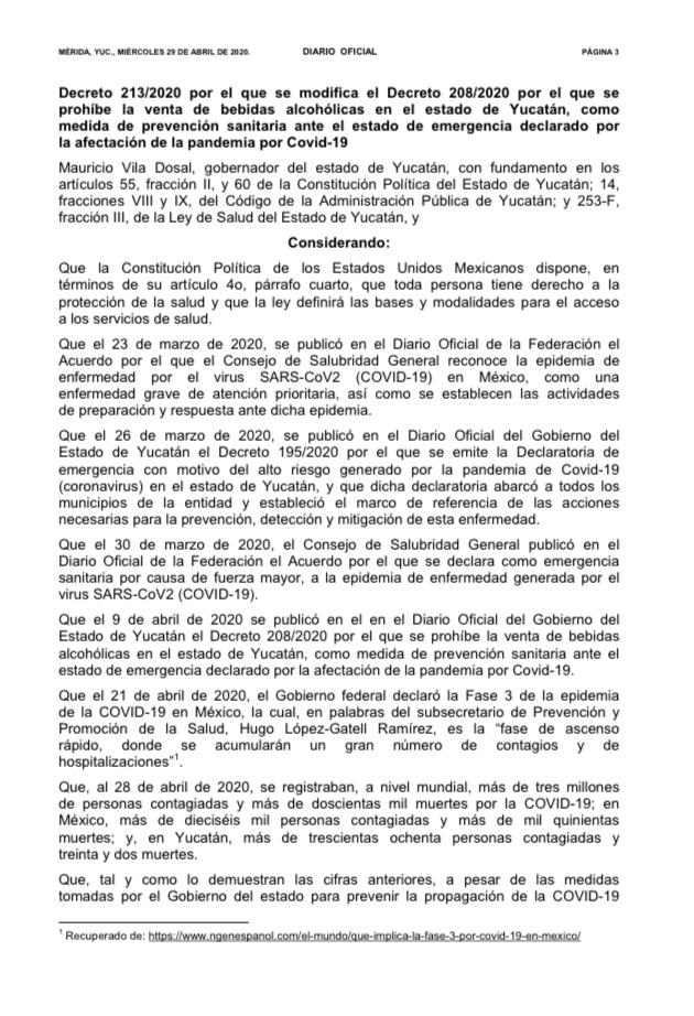 En el nuevo decreto, se señala que ante la declaratoria de la Fase 3 de la epidemia en México y el incremento de infecciones y fallecimientos, así como la “alta probabilidad de que el número de personas contagiadas y muertes continúe en ascenso”, el Gobierno del Estado considera pertinente ampliar el período de prohibición de venta de los mencionados insumos.
