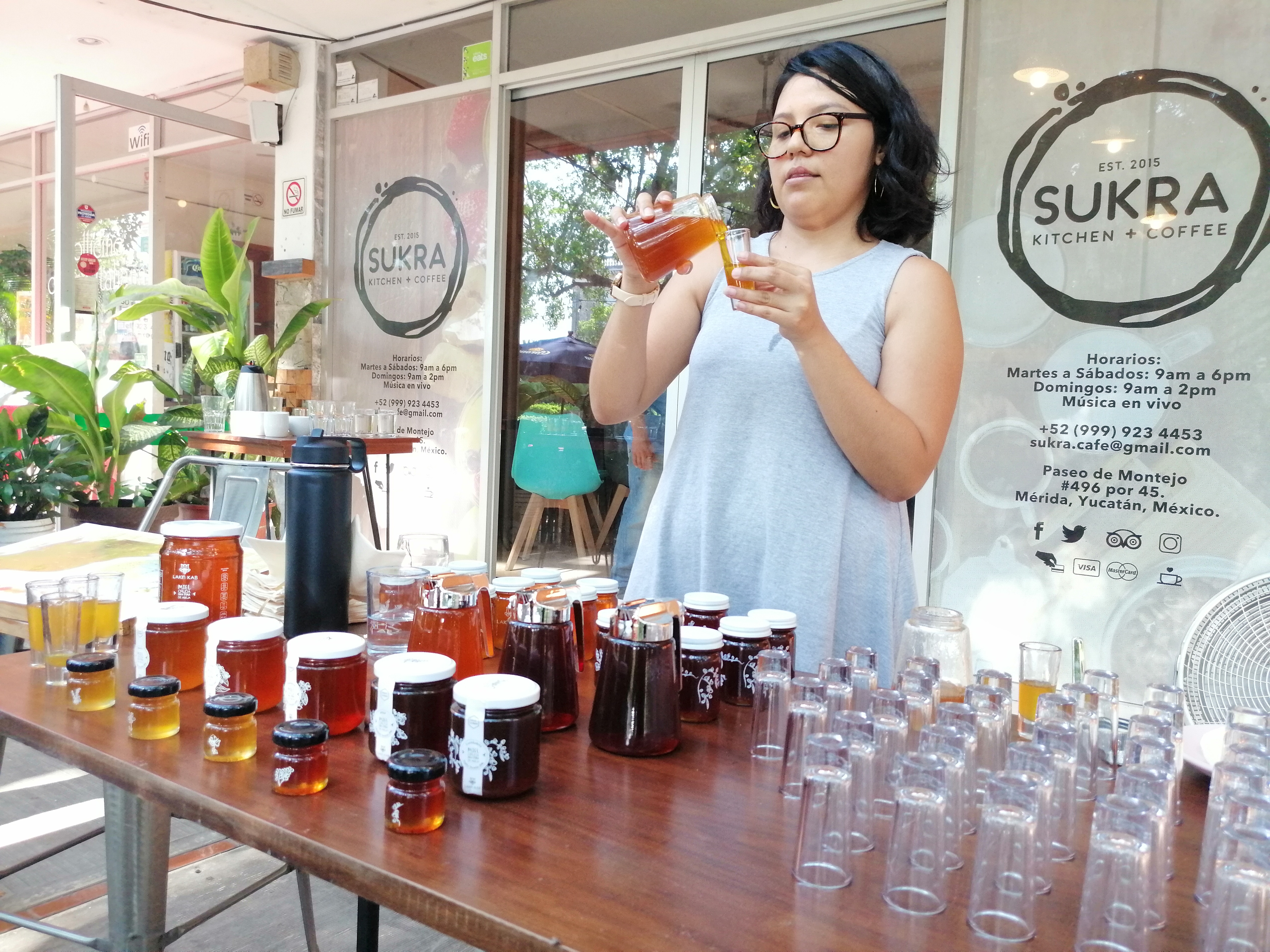 Con la finalidad de que las personas conozcan las diferentes variedades de mieles que existen en Yucatán, la apicultora y antropóloga social Úrsula Martín Moreno llevó a cabo el sábado 25 de mayo una cata de mieles en la cafetería Sukra.