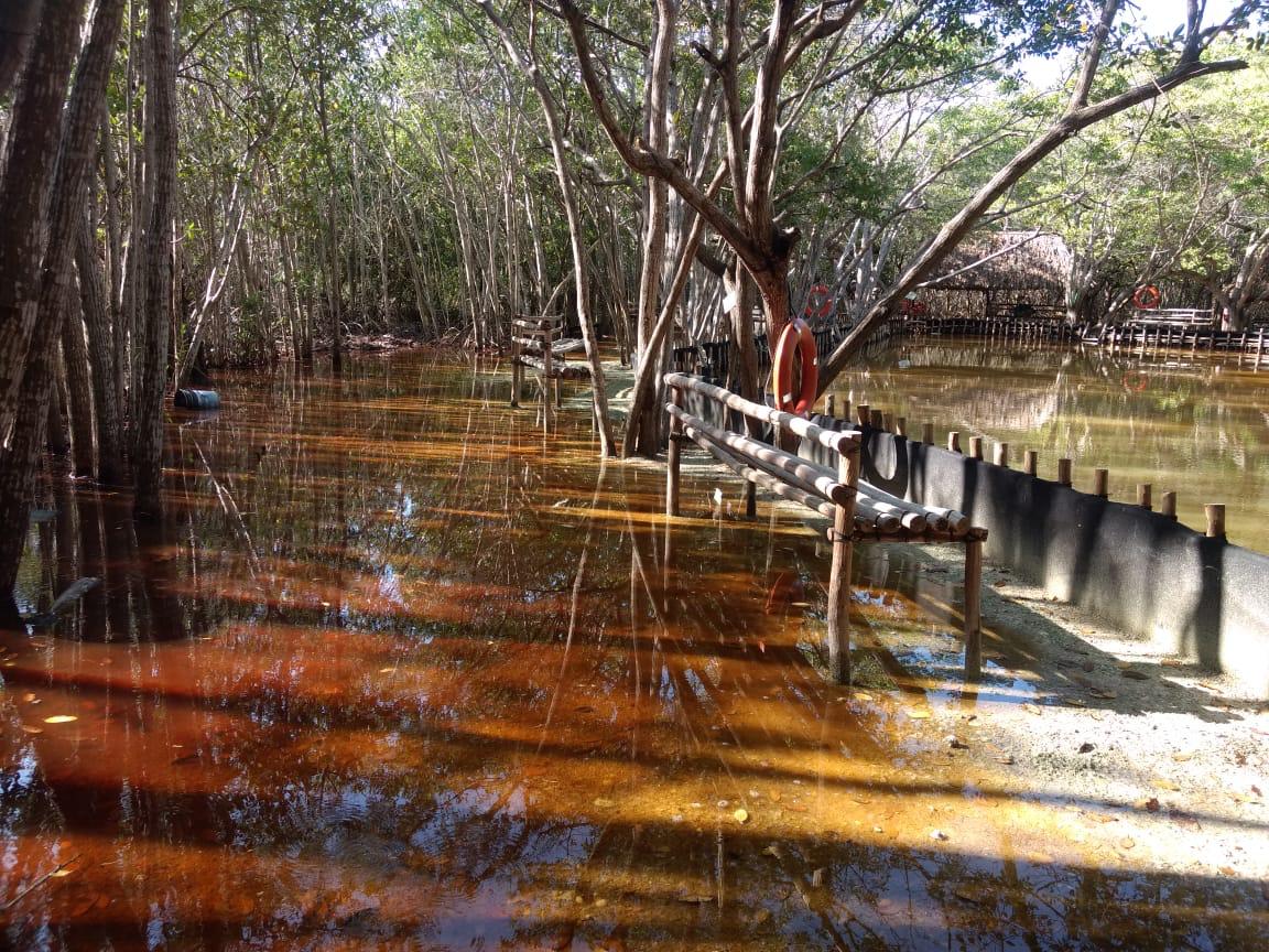 Caída de árboles y de ramas grandes, así como encharcamientos y senderos lodosos, son los daños principales en los sitios turísticos que pueden representar un riesgo para los visitantes. En el caso de los cenotes, las aguas sobrepasaron sus niveles normales y los caminos están muy resbalosos, informó el patronato CULTUR a través de un comunicado.