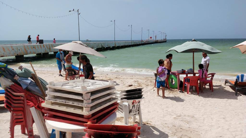 Por otro lado, personal del Gobierno del Estado removió sillas y mesas de plástico que restauranteros habían colocado en la playa a un costado del muelle de Chicxulub Puerto y en un extremo del Malecón Internacional de Progreso para ofrecer el servicio a sus clientes, lo cual está prohibido actualmente en esas áreas por la emergencia sanitaria.
