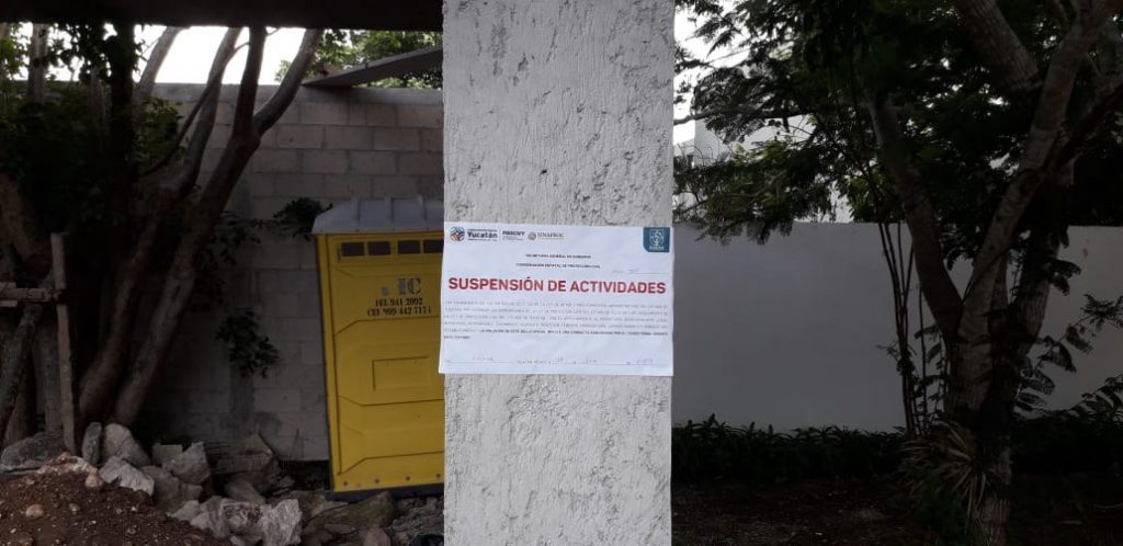 Mérida, Yucatán, 5 de agosto de 2020.- El Gobierno del Estado clausuró tres obras en construcción por incumplir con los protocolos sanitarios para evitar contagios de COVID-19, tanto en el traslado de los empleados como en los centros de trabajo. Los responsables de las edificaciones también fueron multados.