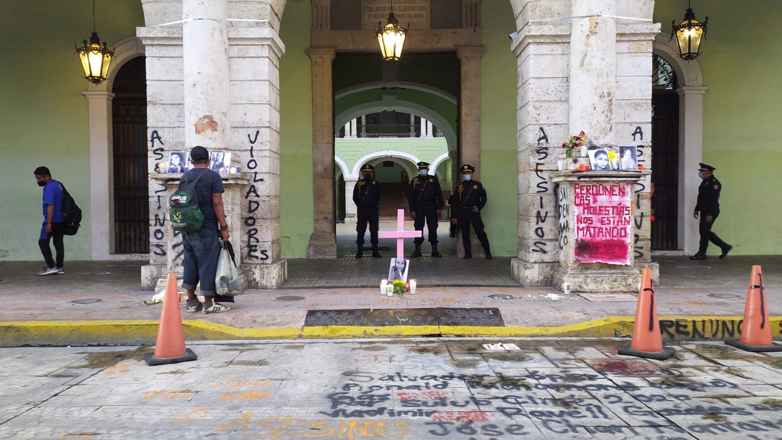 Las manifestantes colocaron un altar en la sede del Ejecutivo e hicieron un pase de lista en honor de las víctimas, tras lo cual guardaron un minuto de silencio.