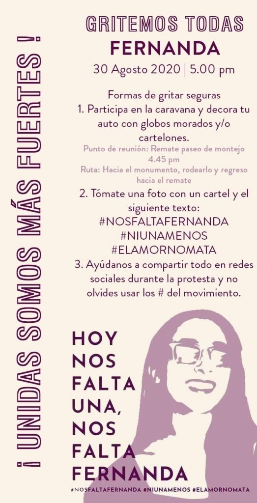 “Fernanda, yo marcharé por ti, estarás en cada señal y en cada batalla llorada. No dejaremos que olviden tu nombre”, señala la convocatoria en redes sociales.
