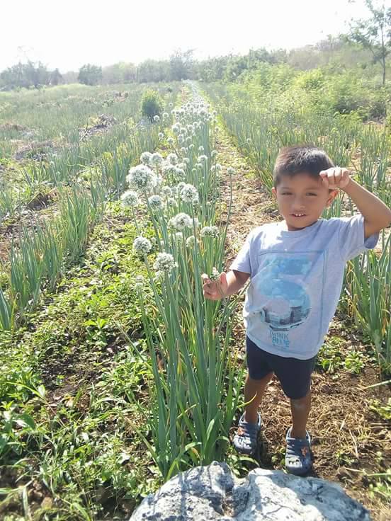 Visité en su parcela de “San Rafael” a mi amigo José Carlos Cen Rubio, conocido por todos como “Patito”, uno de los mejores productores de las conocidas cebollitas de Ixil.