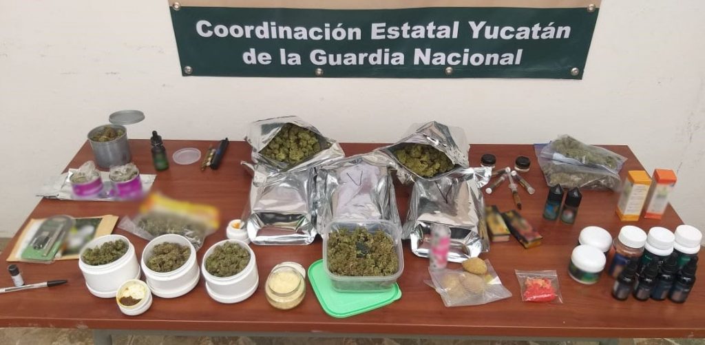 De acuerdo con un comunicado de la corporación de seguridad federal, durante acciones de inspección y vigilancia, fueron encontrados 3 kilos 41 gramos de hierba seca, 357 mililitros en aceite de cannabis, 120 gramos de marihuana en goma , 144 gramos en resina, 120 gramos en pomada, 120 cápsulas, 75 gramos en galleta y dos cigarros electrónicos.
