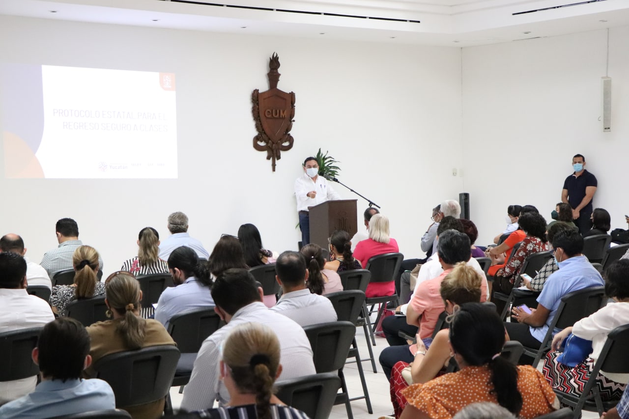 Presentan el Protocolo Estatal para el Regreso Seguro a Clases a 140 escuelas particulares de Yucatán.