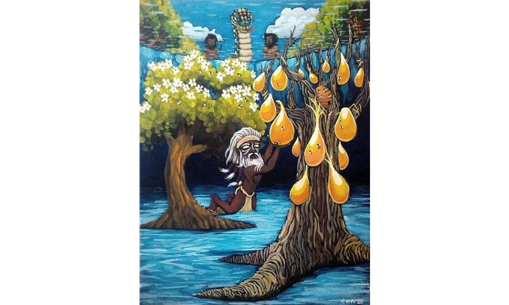Un día, este hombre salió en busca del alimento y llegó a un árbol ubicado a un lado de cierto manantial cercano al nacimiento del río East Alligator. En dicho árbol había una colmena de abejas silvestres y Boubit retiró las primeras ramas hasta descubrir la parte hueca del árbol. En su interior encontró una colmena con mucha miel y pudo ver que en la parte inferior del mismo tronco había más panales. Boubit decidió partir el árbol para agarrar todas las colmenas.