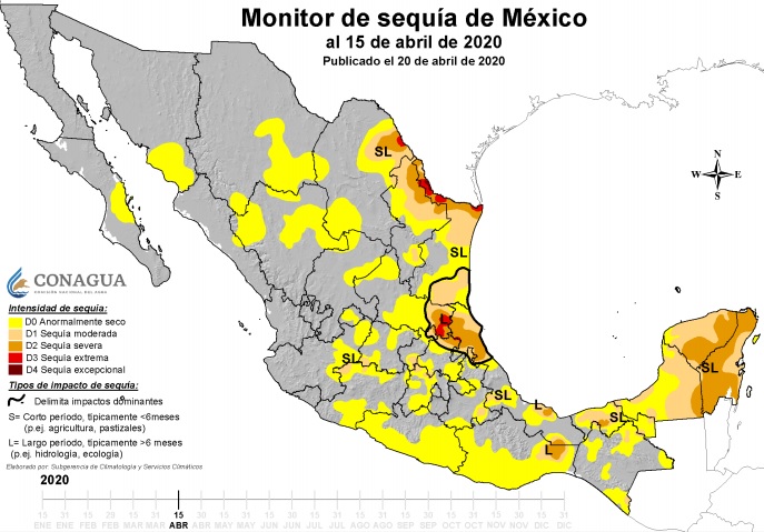 En 47.5% del territorio estatal se presentan secas severas, mientras que en 46.4% la sequía es moderada. Solamente 0.7% del área que abarca la entidad no presenta afectaciones.