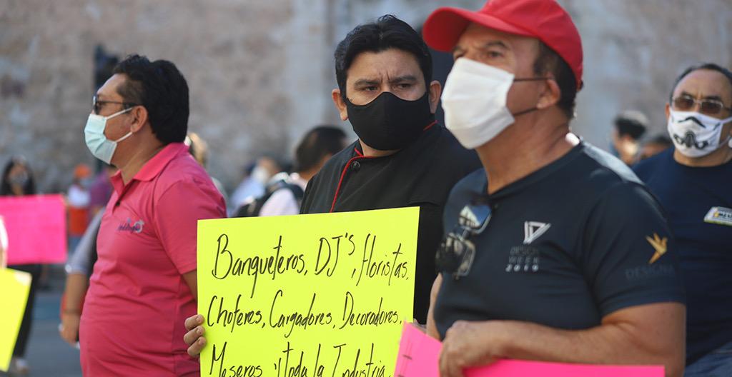Por ello, el personal de esas compañías se manifestó con la caravana. Exigió al gobernador Mauricio Vila Dosal levantar la restricción, así como entablar diálogo para llegar a acuerdos sobre los requisitos para realizar eventos sociales.
