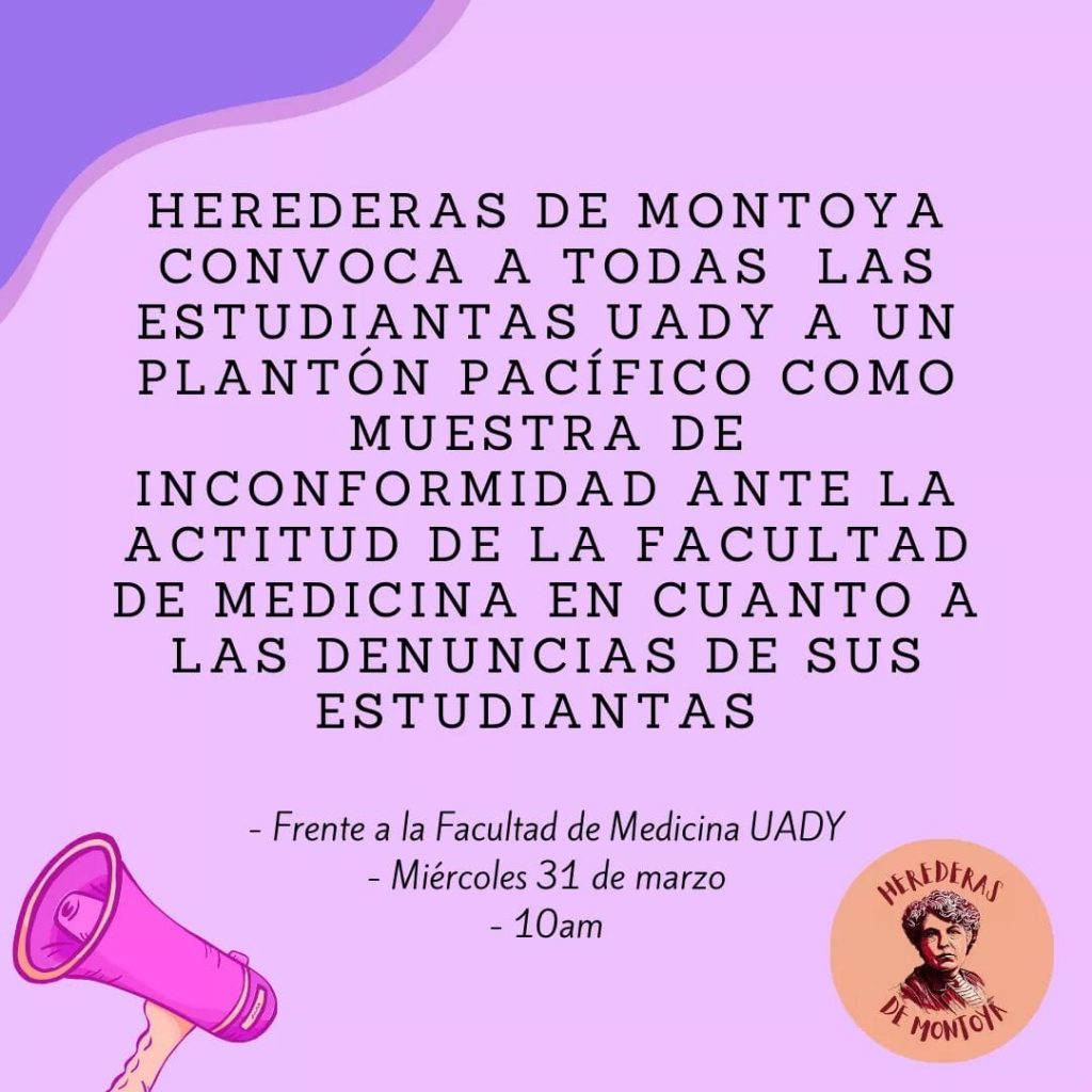 Entre tanto, la colectiva Herederas de Montoya convocó a un plantón pacífico para mañana a las 10 horas para exigir a las autoridades de la UADY atender las denuncias de violencia sexual presentadas por las alumnas.