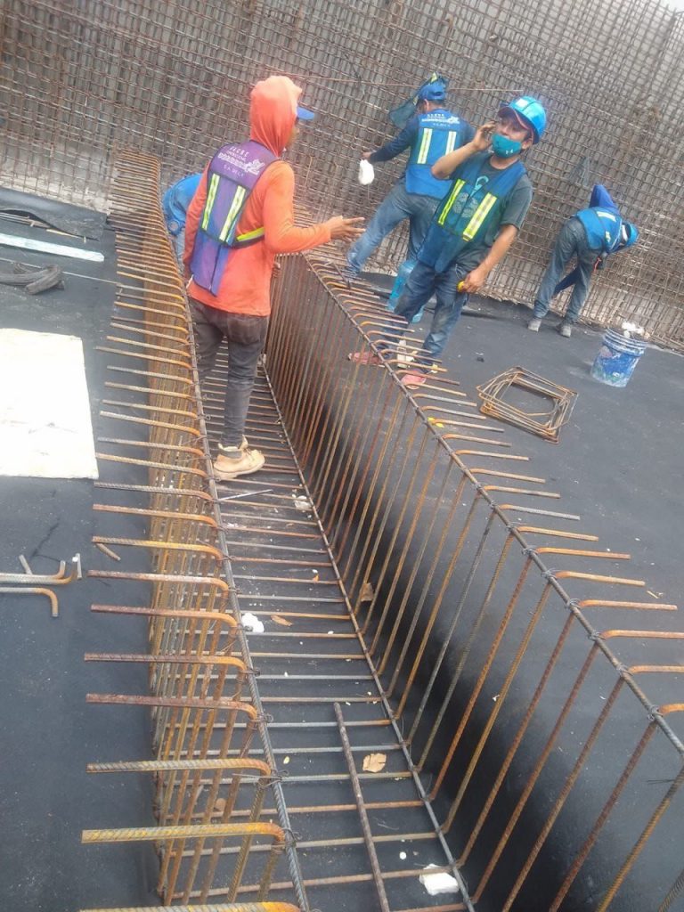 La semana pasada fue armada y colocada la estructura de acero del canal central que después de colarse se convertirá en el camellón central del paso a desnivel. Dicha estructura se forma con varillas colocadas estratégicamente, dejando un espacio de 12 centímetros entre cada una. Posteriormente se une cada cruce de varillas con alambres de acero con el propósito de lograr un estructurado de muy alta resistencia que dará soporte al muro de concreto sobre el talud del canal central y formará el asiento del armado de acero.