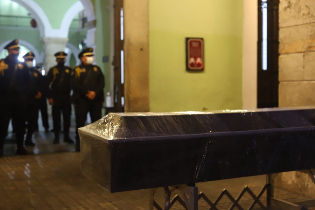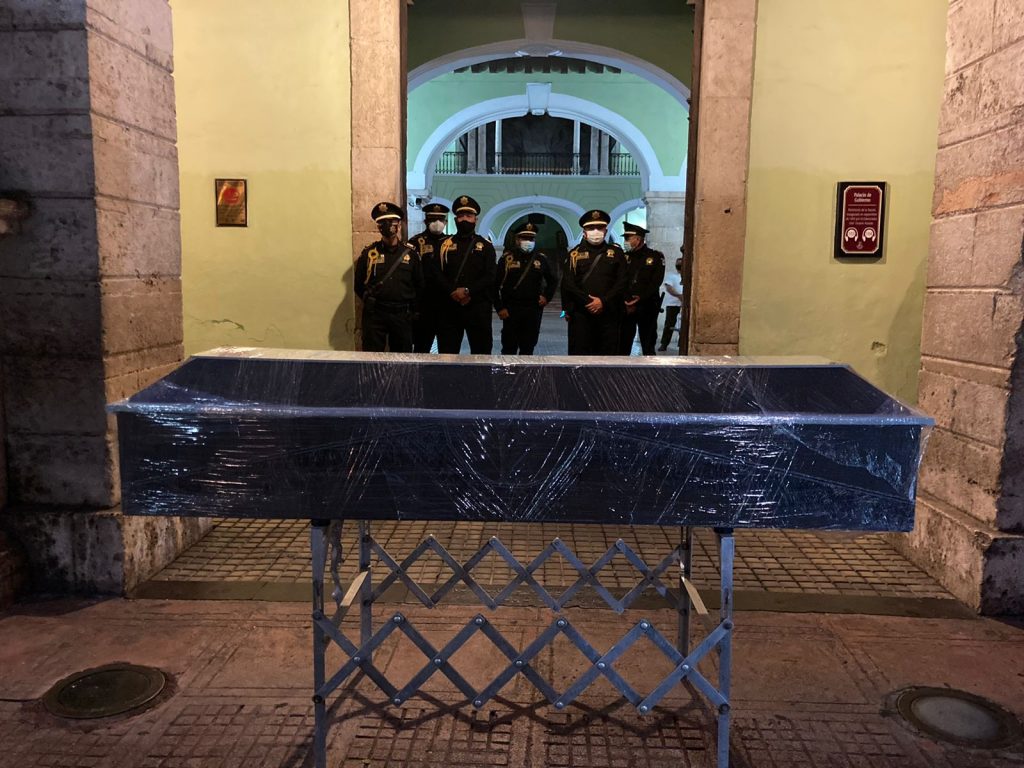 Mérida, Yucatán, 6 de agosto del 2021.- José Eduardo Ravelo Echevarría, mejor conocido como “el Güero”, acusó a policías de haberlo golpeado y violado en Mérida. Falleció días después, a consecuencia del ataque. Su madre, María Ravelo Echevarría, pidió apoyo a las autoridades y al no ser escuchada, acudió al Palacio de Gobierno con el féretro del joven para exigir justicia. Aunque le comunicaron que ya hay personas detenidas por los crímenes, ella declaró que luchará hasta que los responsables sean sentenciados.