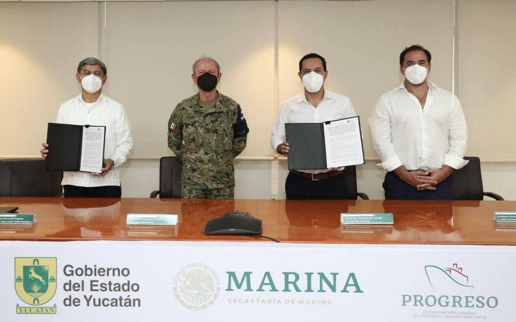 Progreso, Yucatán, 21 de julio de 2021.- Ayer el Gobierno del Estado y la Administración Portuaria Integral (API) de Progreso firmaron un acuerdo para ampliar y modernizar el Puerto de Altura de Progreso, proyecto que se buscaba desde hace 10 años.