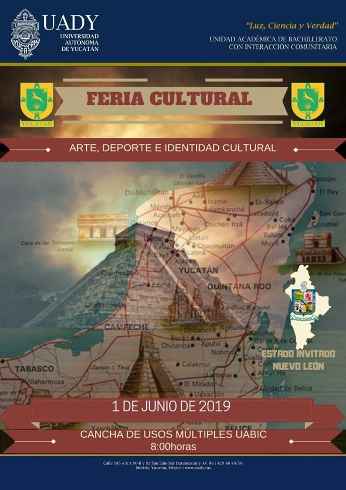Con la finalidad de preservar nuestras raíces y fomentar la cultura maya, la Unidad Académica de Bachillerato con Interacción Comunitaria (UABIC) de la Universidad Autónoma de Yucatán (UADY), celebrará en sus instalaciones la “Feria Cultural 2019”, un evento abierto a la comunidad estudiantil y el público en general.