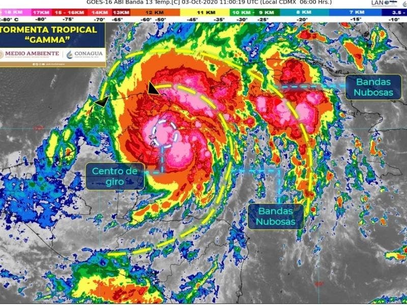 Mérida, Yucatán, 3 de octubre del 2020.- La tormenta tropical “Gamma” entraría a territorio yucateco esta tarde, entre las 14 y 16 horas, por el municipio de Chemax. Así lo informaron la coordinación estatal de Protección Civil (PROCIVY), y el gobernador Mauricio Vila Dosal.