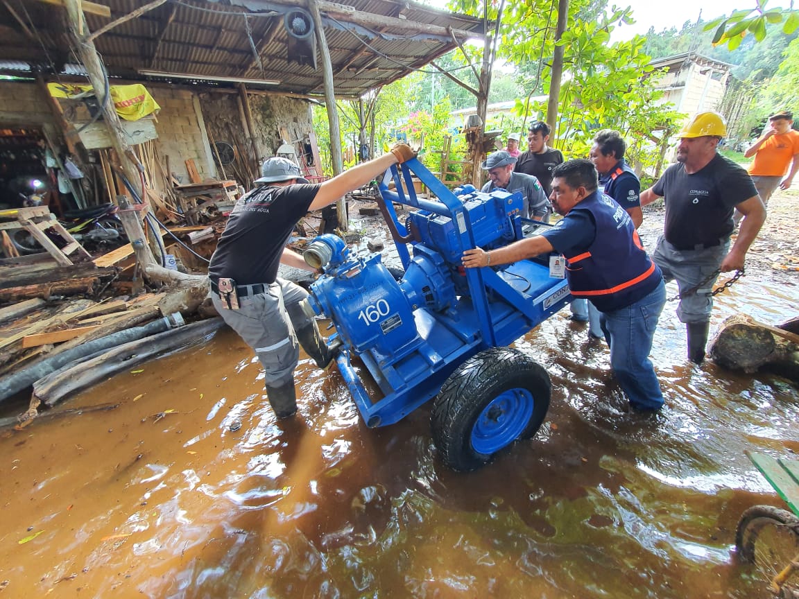 Además, cinco brigadistas de Protección a la Infraestructura y Atención de Emergencias (PIAE) de la Comisión Nacional del Agua (CONAGUA), se trasladaron a Pisté para desalojar el agua acumulada en las viviendas afectadas: emplearon dos equipos de bombeo de 4 y 6 pulgadas (con capacidad para desalojar 360 mil litros de agua por hora), así como un camión tipo plataforma con grúa y un vehículo pick up. Según un comunicado enviado por esa dependencia, el agua alcanzó los 80 centímetros.