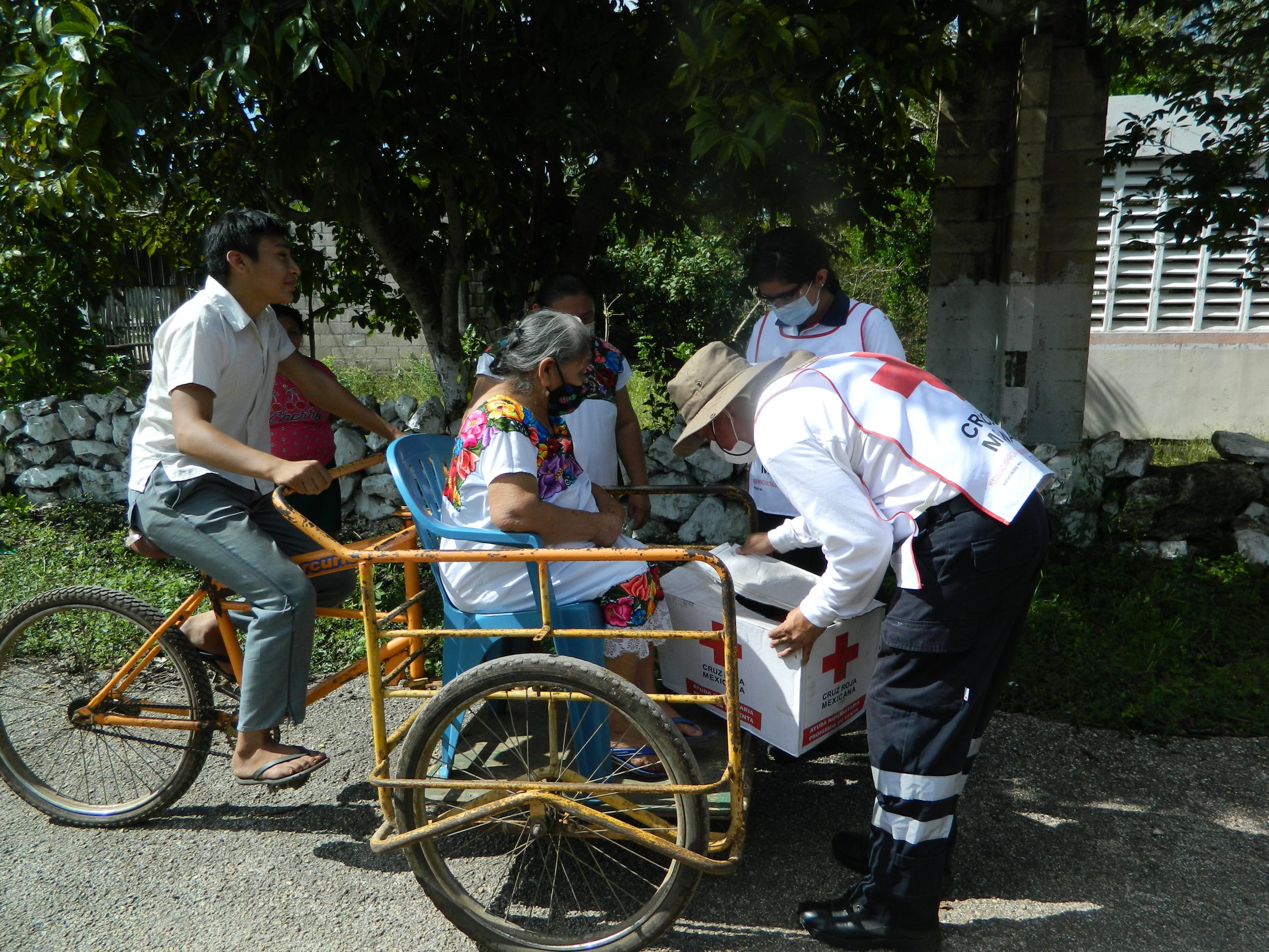 Los voluntarios de Cruz Roja Mexicana en conjunto con personal de la Delegación Valladolid y los comisarios ejidales organizaron la entrega de los apoyos para las familias que viven en una zona que fue afectada por los fenómenos naturales de Gamma, Delta y Zeta en los últimos meses.