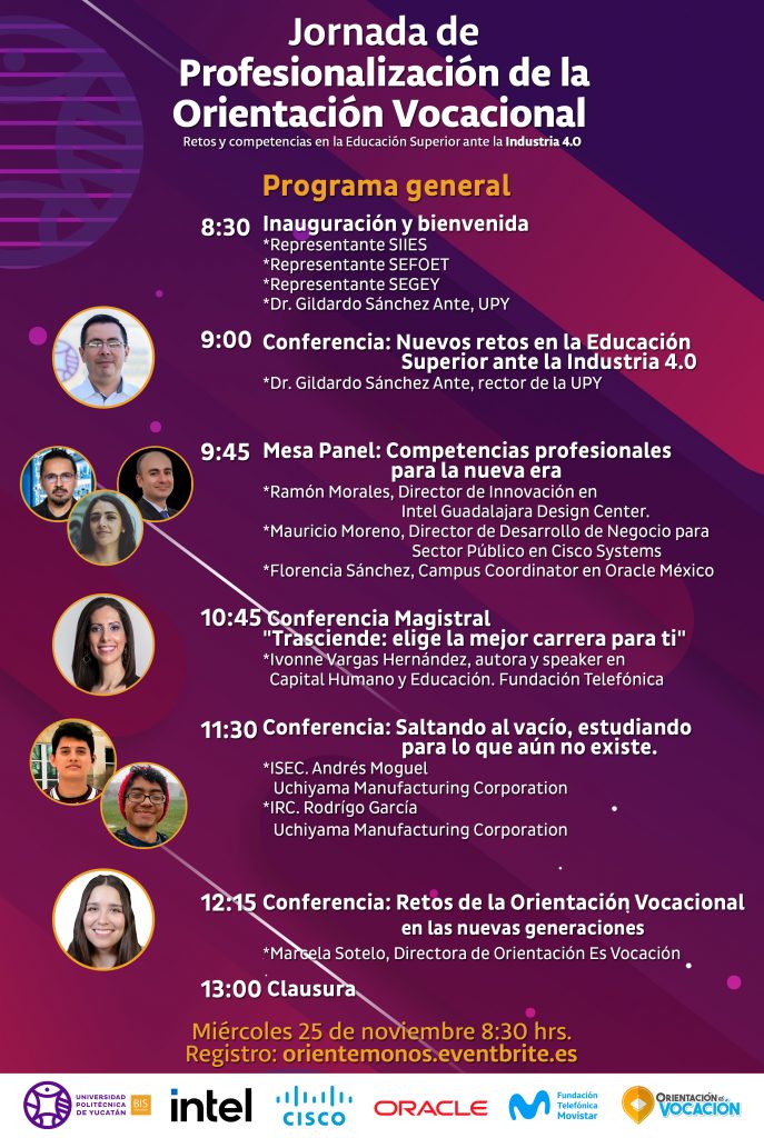 Es por ello y, con el objetivo de brindar herramientas para que el personal que tiene esa delicada labor pueda desempeñar una mejor labor, la Universidad Politécnica de Yucatán (UPY) ha organizado la “2ª Jornada de Profesionalización de la Orientación Vocacional”, la cual se celebrará el próximo miércoles 25 de noviembre de 8:30 a 14:00 hrs. de manera virtual y completamente gratis.