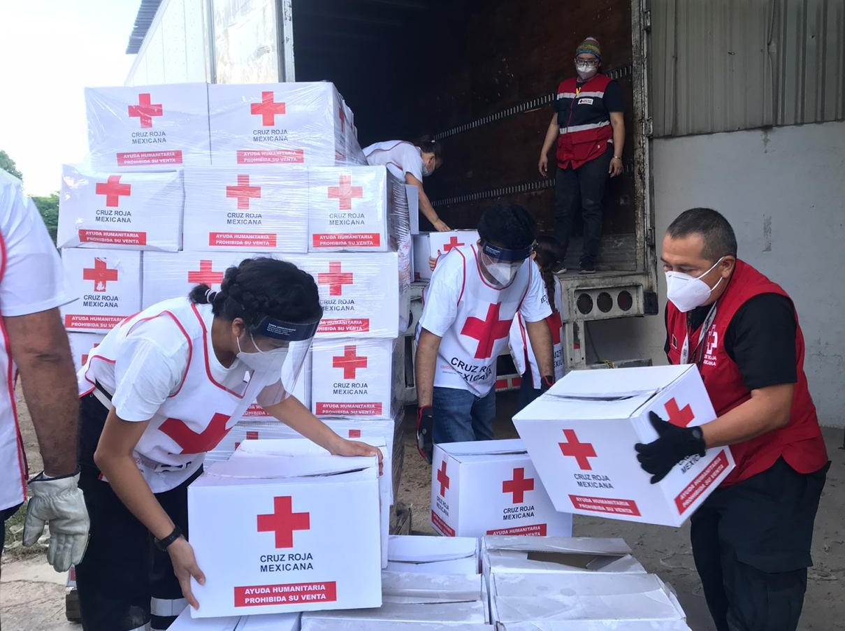 Llega ayuda humanitaria de Cruz Roja para apoyar a familias afectadas tras el paso del huracán Delta por Yucatán