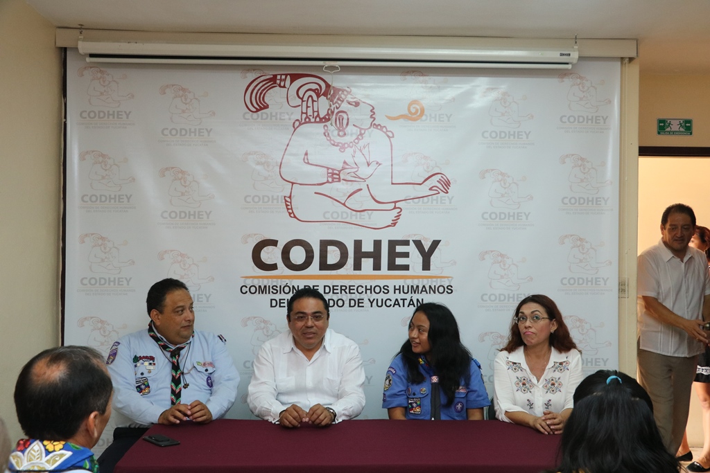la ceremonia, donde el presidente de la CODHEY recibió la pañoleta con bellos