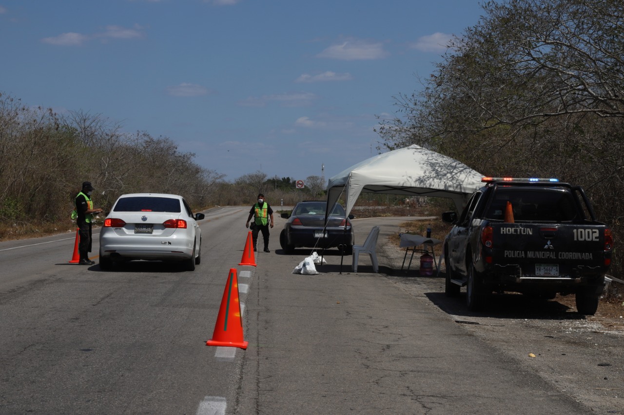 Los accesos a Hoctún también están custodiados por policías municipales, quienes brindan gel antibacterial a los pasajeros de los vehículos que pretenden ingresar. A partir de este lunes, únicamente podrán entrar a la comunidad las personas que residan en ella y cuenten con credencial de elector. Quienes deseen acceder para llegar a otro destino serán redirigidos a la carretera estatal. Desde hace 15 días también se decretó en el municipio la Ley Seca, indicaron policías municipales.